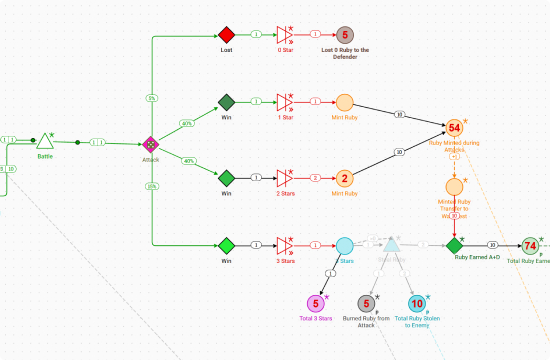 Our games use economic models which we process and test using hundreds of simulations, ensuring the resilience and balance of all sectors of the ecosystem.
